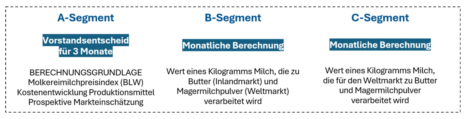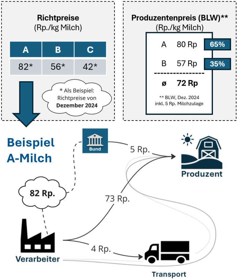 - Der Produzentenpreis gemäss BLW ist ein Durchschnitt von A-, B- und manchmal auch C-Milch.